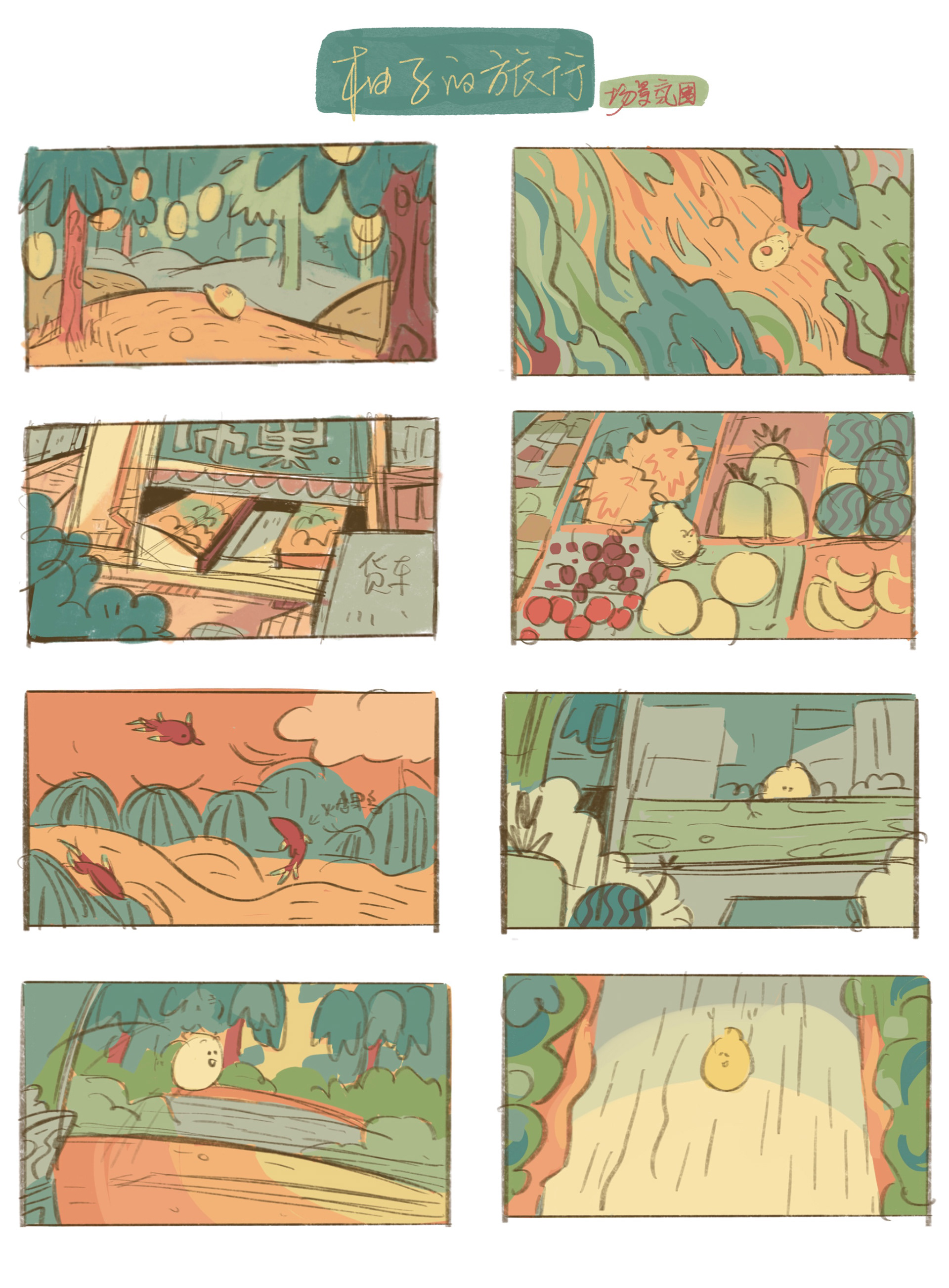 My thesis of undergraduate studying in Communication University of China. It tells a story about a pomelo's journey, and how he found what his dream is.